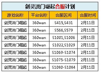 【2月11日22:00】剑灵洪门崛起部分区服数据互通公告2019-02-11 16:00:00